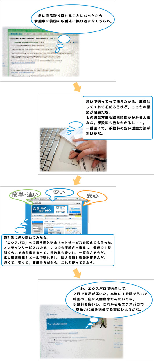 韓国の取引先に急いで支払いしなきゃ(日本人男性 40代)