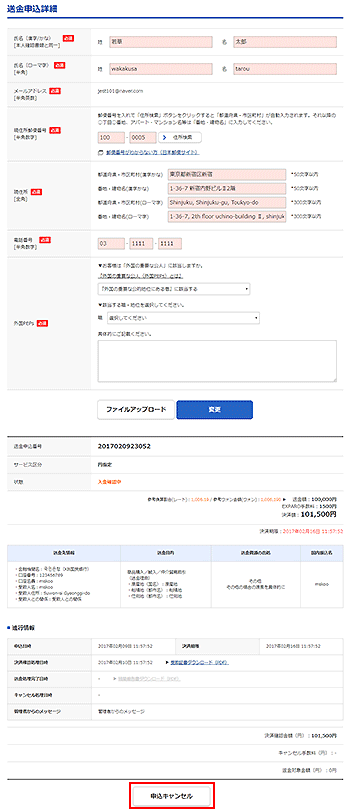 国際送金処理前の送金申込キャンセルについて(ゲスト会員)
