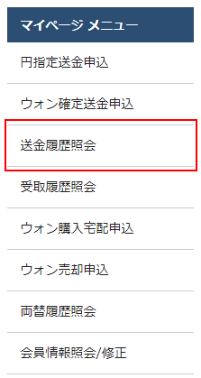 韓国送金履歴照会(会員様)