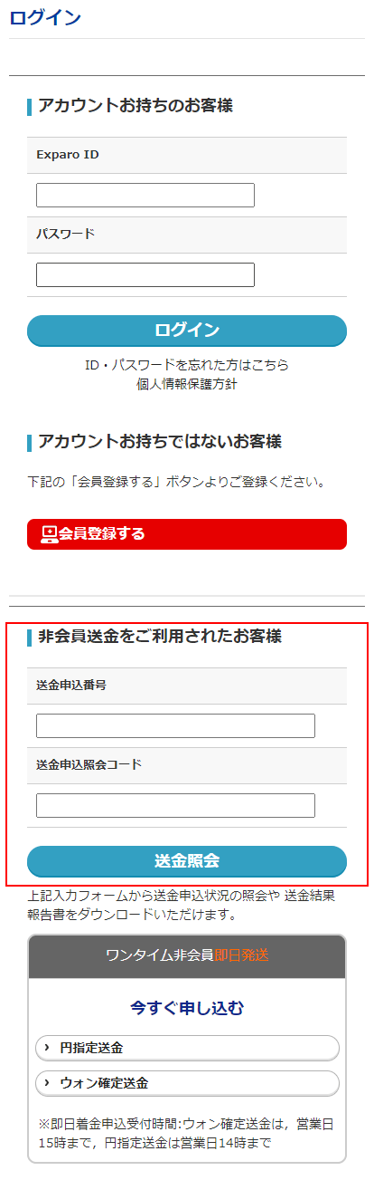 ゲスト会員も送金申込内容や送金処理の進捗状況の確認をご照会いただけます。