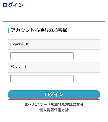① 「エクスパロ」のトップページよりログインをクリックし、ログインページにアクセスへ