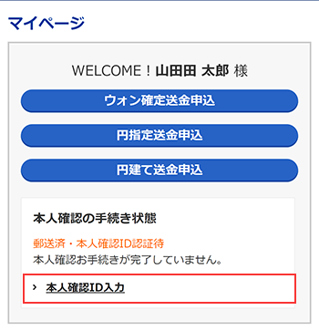 * 正しく本人確認IDが入力され、認証に成功した場合、「本人確認ID認証完了」画面が表示されます。