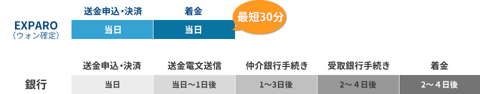 | 受取銀行手数料 | ₩ 10,000~30,000 | ₩ 10,000~30,000 | ₩ 10,000~30,000 |