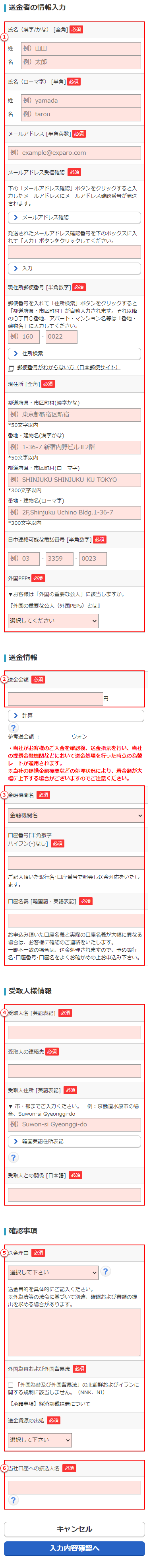送金者情報、送金金額、送金先口座情報等必要事項をフォームにご入力ください。
