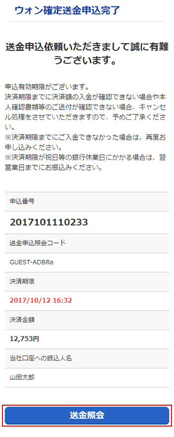 またゲスト会員送金状況確認ページからもご確認いただけます。