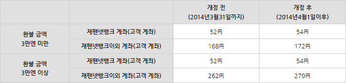 ※ 2014년3월31일까지 환불신청을 하셔도, 실제로 환불되는 수수료는 적용되는 일시의 개정후 수수료에 따라 결정되오니, 환불신청시에 표시된 수수료 금액과 다를 수 있습니다.