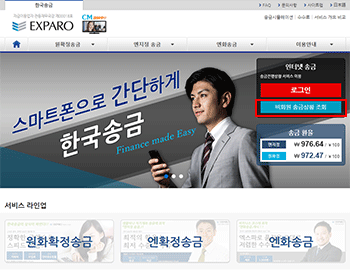「EXPARO」의 메인페이지에서 [비회원 송금상태 조회]를 클릭해 주세요.