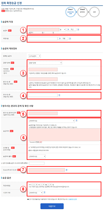 - Step2송금신청 정보 입력