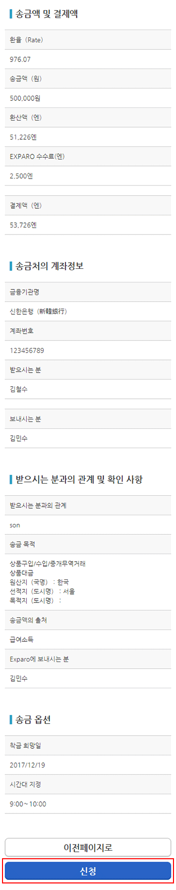 송금신청 내용에 틀림이 없는지 확인해 주시기 바랍니다.