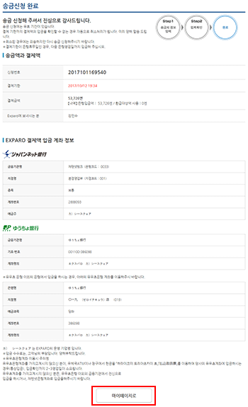 - Step3결제금액의 입금(송금신청완료)