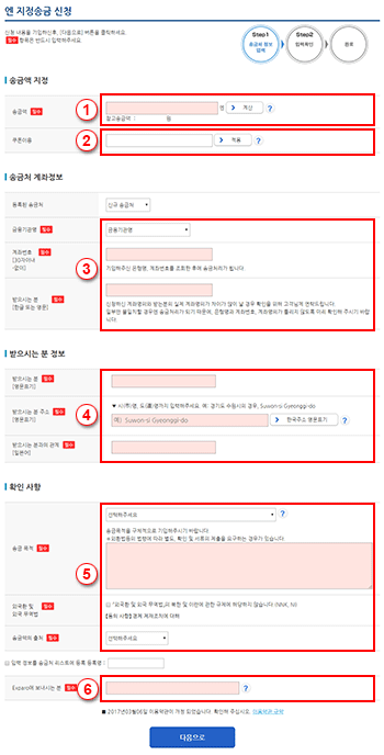 - Step2송금신청 정보 입력