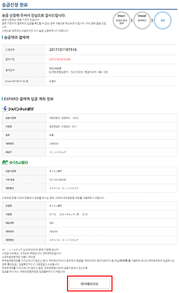 - Step3결제금액의 입금(송금신청완료)